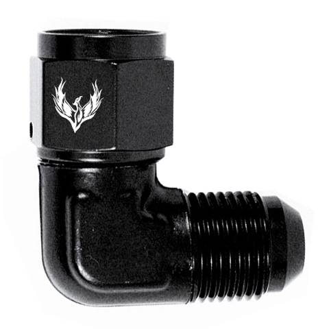 90 Degree Female to Male AN Swivel Elbow -4AN to -4AN Black