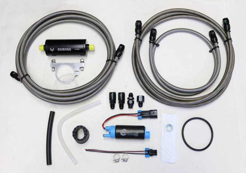 The Quantum TBI to LSX fuel system is a comprehensive fuel delivery solution for all LSX motor swaps into 1988-1995 TBI GM Trucks and SUVs. This system will support basic bolt-on 4.8L, 5.3L, and 6.0L swaps all the way up to forced induction applications making over 650rwhp. A no-cost upgrade to a 8AN feed line allows the lines themselves to support over 1000hp. ALL fittings and hoses are USA-made by Phenix Industries. Included with each fuel system are the following: