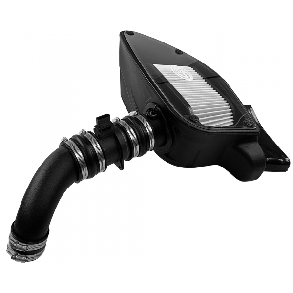 S&B cold air intakes are engineered to minimize air restriction and increase air flow far better than your stock system. S&B intake kits come with a fully enclosed one piece air box that protects the air filter from dirt and keeps out unwanted engine heat.